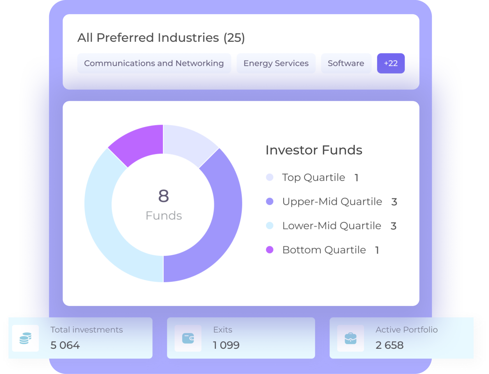 Besides contact information, we hand you over lots of data about investors we’ll introduce you to, including: