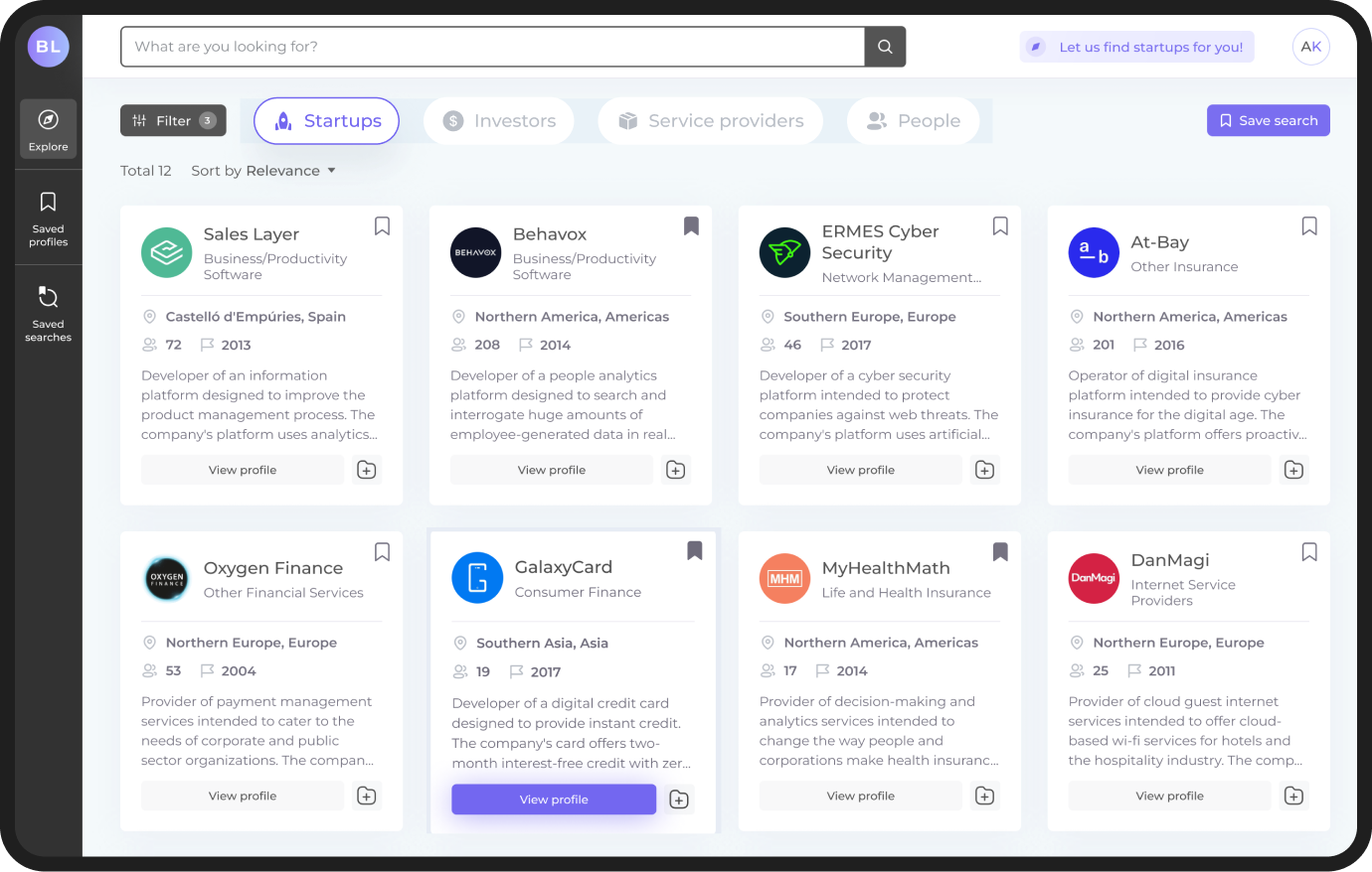 Use flexible filters and smart search to quickly find relevant companies among hundreds of thousands validated startups, suppliers, investors & people